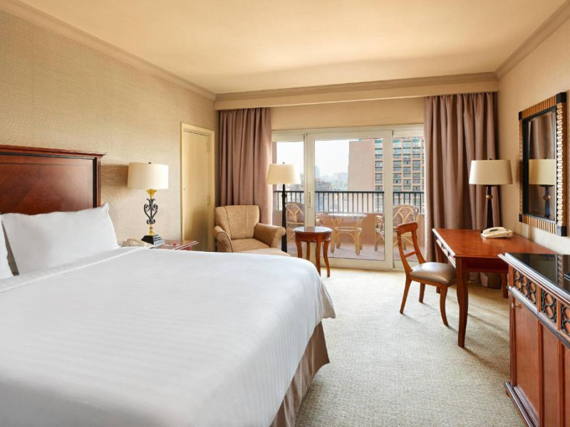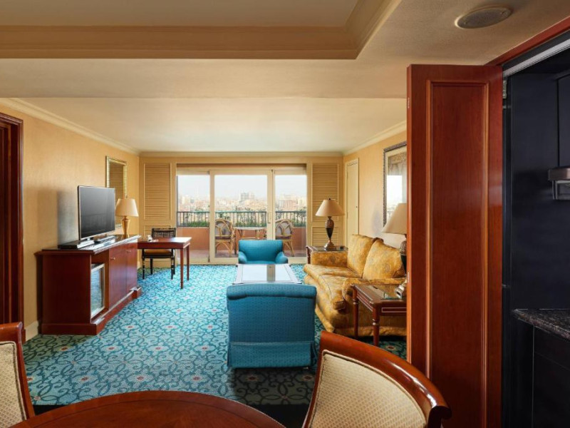 Toate camerele de la Cairo Marriott sunt dotate cu TV prin satelit, minibar, facilități pentru prepararea de ceai/cafea și băi elegante. Unele camere oferă, de asemenea, vederi panoramice asupra raului Nil.