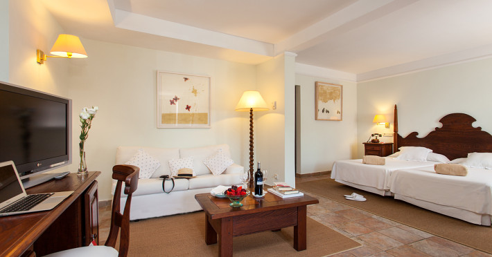 This comfortable owner-run hotel lies amidst pine trees in a quiet, central residential district in the resort of Cala Sant Vicente. The two beautiful local sandy bays are situated within a few minutes walk of the hotel and the nearest links to the public transport network are a few paces away whilst the international airport is about 60 km from the hotel.||Lovingly built in 1930, this hotel is surrounded by 300-m² of beautiful gardens and offers a total of 38 rooms, including 15 suites, spread over 3 floors. Facilities include a bar, an air-conditioned à la carte non-smoking restaurant and a public Internet terminal (for an additional fee) in addition to a bicycle hire service. Room and laundry services round off the offerings.||Each of the pleasant rooms comes with an en suite bathroom, a hairdryer, a minibar/ fridge, a hire safe, a direct dial telephone, Internet access, satellite/ cable TV and a balcony.||There is a swimming pool in the outdoor complex as well as a childrens pool, a poolside bar and a sun terrace with parasols and sun loungers laid out ready for use. Guests may relax in the indoor swimming pool or the sauna or enjoy a massage whilst sports enthusiasts may pay a visit to the in-house gym. The nearest golf course is approximately 9 km away.||Guests may select their breakfast from an ample buffet.This comfortable owner-run hotel lies amidst pine trees in a quiet, central residential district in the resort of Cala Sant Vicente. The two beautiful local sandy bays are situated within a few minutes walk of the hotel and the nearest links to the public transport network are a few paces away whilst the international airport is about 60 km from the hotel.||Lovingly built in 1930, this hotel is surrounded by 300-m² of beautiful gardens and offers a total of 38 rooms, including 15 suites, spread over 3 floors. Facilities include a bar, an air-conditioned à la carte non-smoking restaurant and a public Internet terminal (for an additional fee) in addition to a bicycle hire service. Room and laundry services round off the offerings.||Each of the pleasant rooms comes with an en suite bathroom, a hairdryer, a minibar/ fridge, a hire safe, a direct dial telephone, Internet access, satellite/ cable TV and a balcony.||There is a swimming pool in the outdoor complex as well as a childrens pool, a poolside bar and a sun terrace with parasols and sun loungers laid out ready for use. Guests may relax in the indoor swimming pool or the sauna or enjoy a massage whilst sports enthusiasts may pay a visit to the in-house gym. The nearest golf course is approximately 9 km away.||Guests may select their breakfast from an ample buffet.