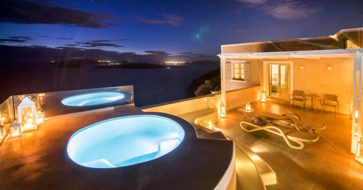 Hotelul pune la dispozitia turistilor terasa cu vedere catre Caldera, cu piscina incalzita si sezlonguri, umbrele si prosoape de plaja, bar la piscina, restaurant interior la piscina, parcare privata gratuita, receptie 24 ore, Wi-Fi gratuit in camere si toate zonele publice, serviciu de transfer gratuit la plaja Perivolos si orasul Fira, sezlonguri gratuite si umbrele la plaja Perivolos pentru oaspetii hotelului, servicii zilnice de menaj.