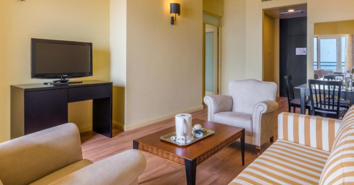 Toate camerele și apartamentele de la Savoy Calheta Beach - All Inclusive oferă vedere la munte sau la mare. Fiecare este dotată cu TV prin satelit, minibar și birou.