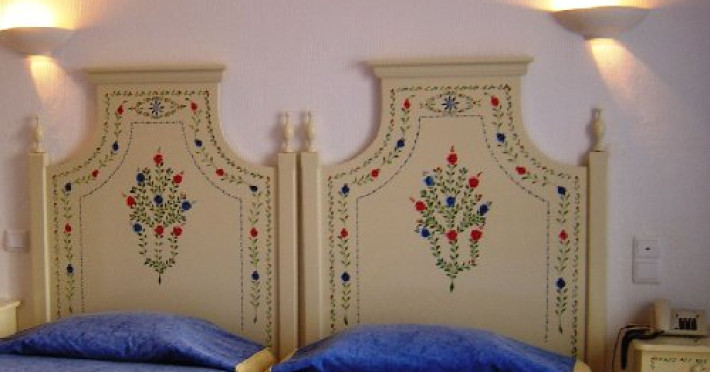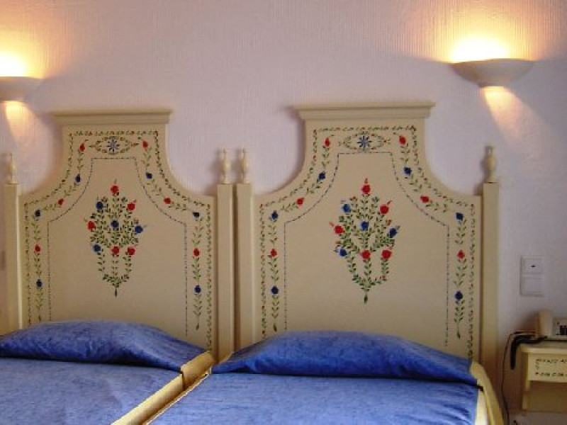 Dotari camere: 73 camere decorate in stil maur, cu mobilier din lemn si decoratiuni de mozaic. Fiecare camera are aer conditionat, TV, telefon, seif, uscator de par, baie cu cada sau dus, balcon sau geam.