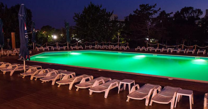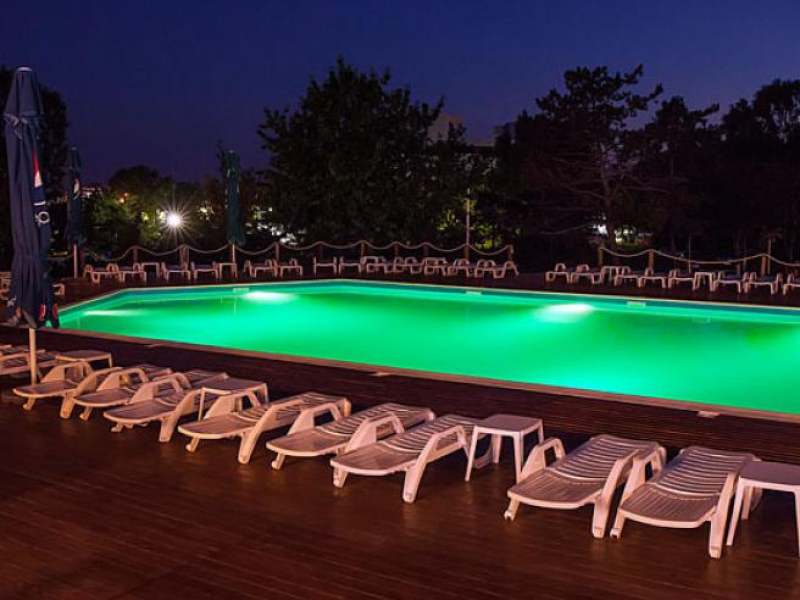 Amplasare: la limita dintre statiunile Cap Aurora si Jupiter, la circa 50 metri de plaja. Facilitati hotel: 110 camere duble si 4 apartamente, restaurant cu aer conditionat, restaurant terasa la piscina cu muzica live, pizzerie – cuptor cu lemne, bar de zi, piscina exterioara, cocktail bar la piscina, sauna, jacuzzi, 2 sali de conferinte, baby-land, plaja privata, parcare (serviciu gratuit, in limita locurilor disponibile, fara rezervare prealabila). Facilitati camere: TV color (televiziune prin cablu), telefon direct, internet wifi, frigobar, aer conditionat, balcon. Toate camerele au baie proprie cu dus.