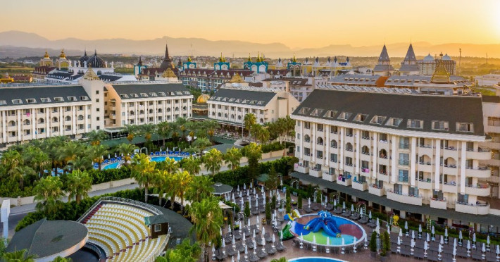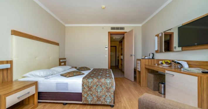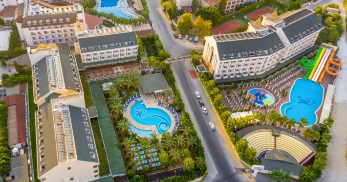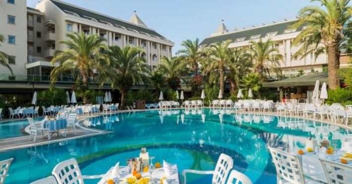 Facilitati hotel: Oaspetii pot beneficia de restaurant principal, baruri, piscina exterioara, piscina interioara, sezlonguri si umbrele, centru spa, sala fitness, programe de animatie, piscina exterioara pentru copii, tobogane, miniclub.