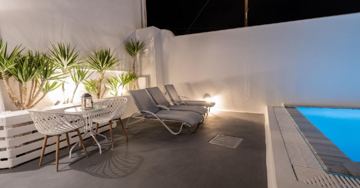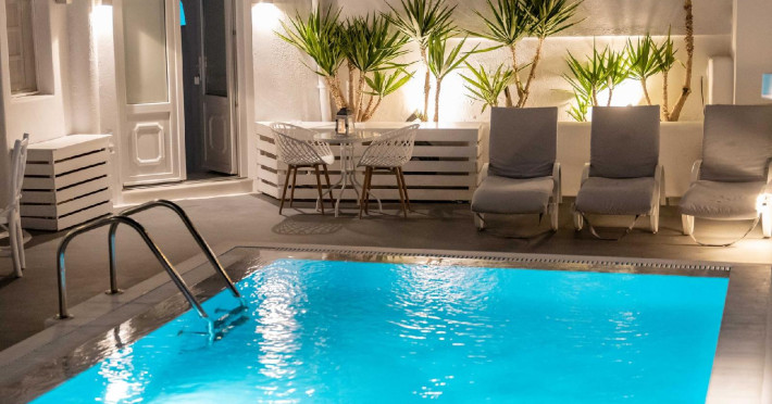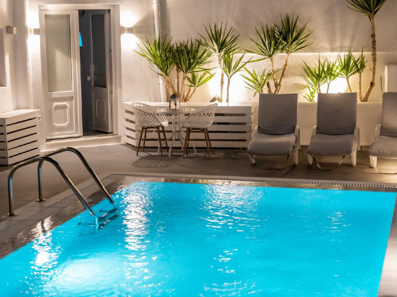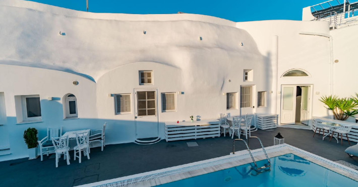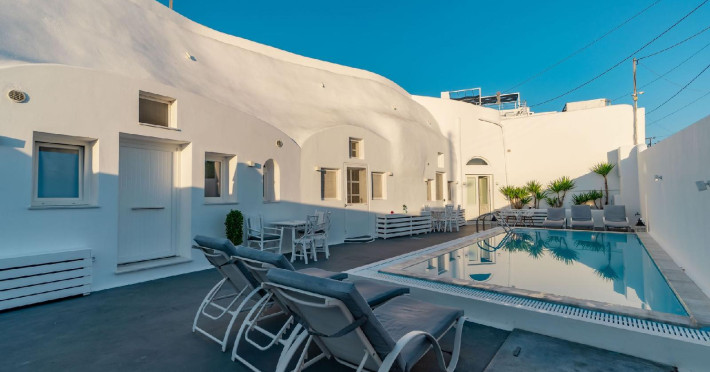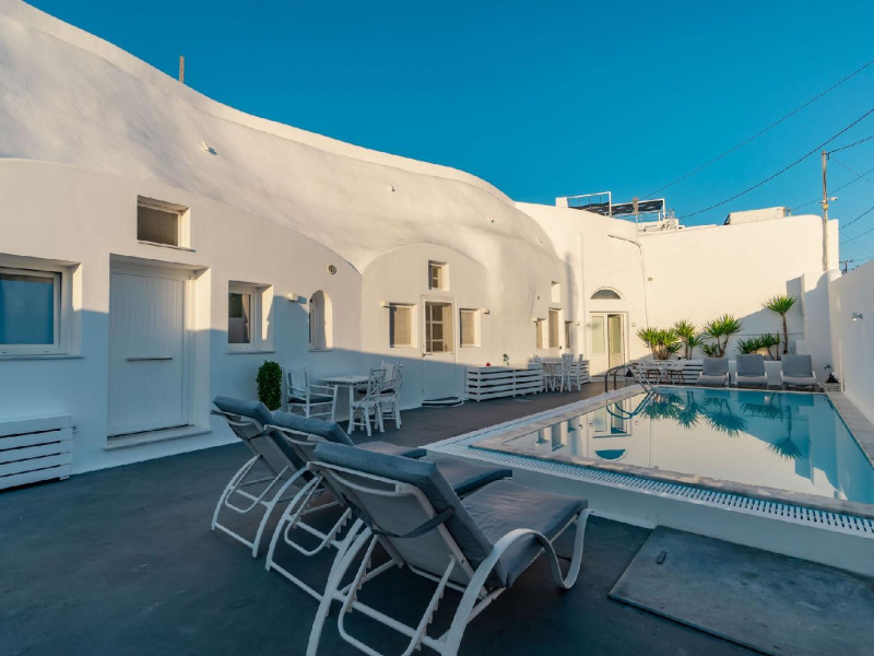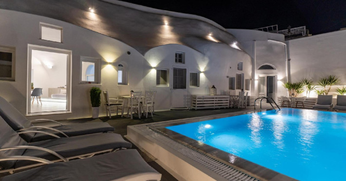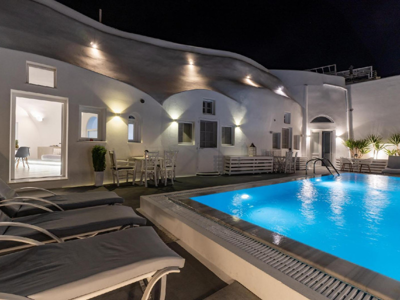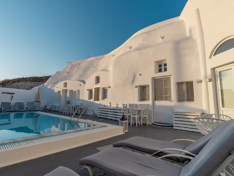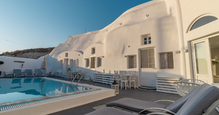 We are proud to present Cally Cave House created with love to the local architecture and landscape. Cally Cave House, a fully renovated traditional Cave accommodation of Santorini, is not only a nice accommodation, but an opportunity to experience the original Santorinian way of living. Hewn vertically into the volcanic soil, which keep the house warm in winter and cold in summer, the rooms are narrow-fronted and built in the rock without any foundation. At the front is the parlour, while the bedroom is at the back, lighted and aired though the parlour and the tiny ventilation tube. The House has been designed according to the traditional architecture of Santorini (Cave House), but also to deliver high standards of modern comfort. It consists of 4 separate suites and can accommodate up to 12 guests. Large swimming pool is equipped with comfortable sun beds. This is opportunity for your family and friends to stay together in the quiet place, but still close to cosmopolitan Fira town.We are proud to present Cally Cave House created with love to the local architecture and landscape. Cally Cave House, a fully renovated traditional Cave accommodation of Santorini, is not only a nice accommodation, but an opportunity to experience the original Santorinian way of living. Hewn vertically into the volcanic soil, which keep the house warm in winter and cold in summer, the rooms are narrow-fronted and built in the rock without any foundation. At the front is the parlour, while the bedroom is at the back, lighted and aired though the parlour and the tiny ventilation tube. The House has been designed according to the traditional architecture of Santorini (Cave House), but also to deliver high standards of modern comfort. It consists of 4 separate suites and can accommodate up to 12 guests. Large swimming pool is equipped with comfortable sun beds. This is opportunity for your family and friends to stay together in the quiet place, but still close to cosmopolitan Fira town.