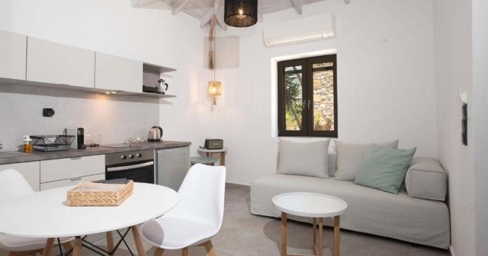 Calme Suites Mani se află in Agios Nikolaos, la 46 km de Kalamata, si oferă cazare cu grădină si acces gratuit la internet WiFi. Toate unitățile includ o bucătărie cu frigider și cuptor, un TV cu ecran plat cu canale prin satelit, facilități de călcat, un dulap și o zonă de relaxare cu o canapea. Toate au un patio cu vedere la grădină. Casa de vacanță este prevăzută cu o terasă. Cel mai apropiat aeroport este Aeroportul Căpitan Vassilis Constantakopoulos din Kalamata, situat la 36 km de Calme Suites Mani.