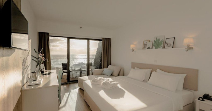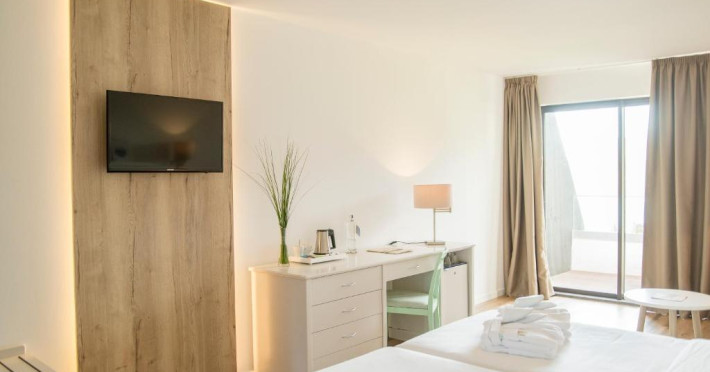 Oferind WiFi gratuit și vedere panoramică la Oceanul Atlantic, Caloura Hotel Resort oferă camere cu aer condiționat, TV cu ecran plat cu canale prin cablu, telefon, birou, dulap, cutie de valori și minibar.