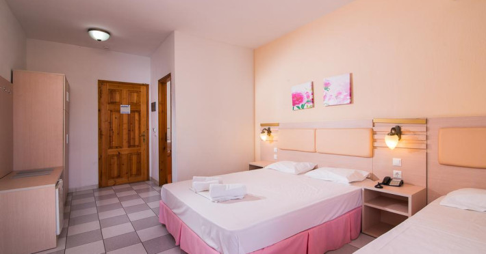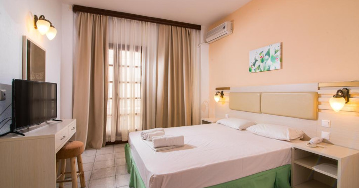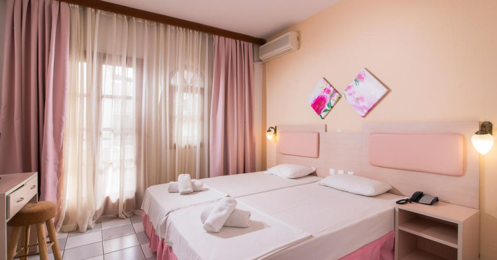 În camere există baie prevăzută cu foehn. Unele camere cu balcon cu vedere la oraș. Camerele confortabile de la Calypso Hotel sunt dotate cu pardoseală de gresie/ marmură, aer condiționat, Tv și seif. Curățenia in cameră se face zilnic. Fiecare unitate de cazare are frigider.