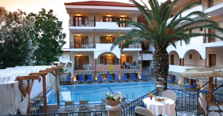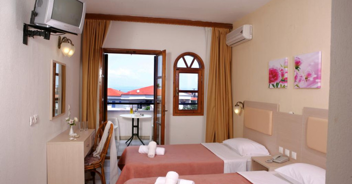 Amplasată în Chanioti (Halkidiki- Kassandra), la 300 m de plaja Hanioti, Calypso Hotel este o proprietate de 2 stele care oferă o piscină în aer liber, terasă cu șezlonguri și umbrele de soare și unități de cazare cu aer condiționat. Proprietatea are servicii de închirieri auto. Se oferă acces gratuit la internet Wi-fi în spațiile publice. Parcarea este posibilă pe stradă, în imediata apropiere a proprietății.