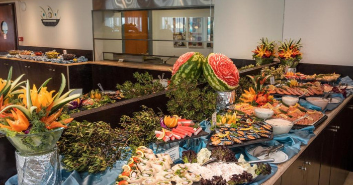 Hotelul all-inclusive Calypso Palace oferă gratuit mancăruri grecesti si internationale. La barul de la piscină sunt servite pe tot parcursul zilei băuturi selectionate.