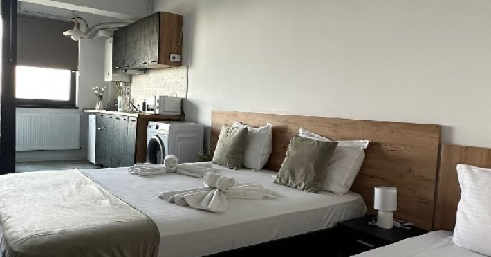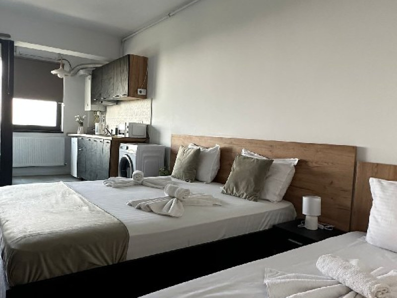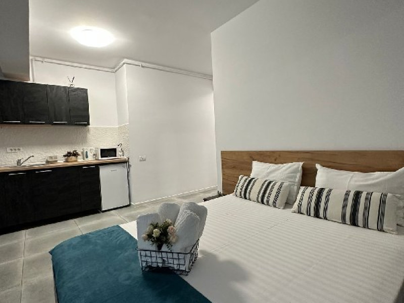 Amenajate cu atentie, latura moderna este cea care primeaza, tocmai pentru ca voi sa va bucurati din plin de confortul oferit. Uita de rutina zilnica si rezerva-ti un loc intr-un cadru intim, placut si relaxant.Studiourile sunt mobilate si utilate astfel incat sa nu iti lipseasca nimic pe parcursul sederii.