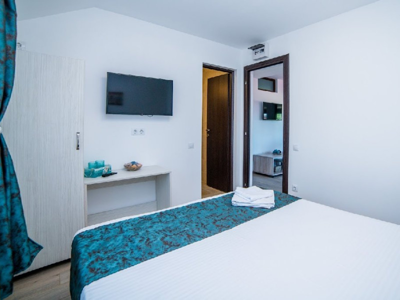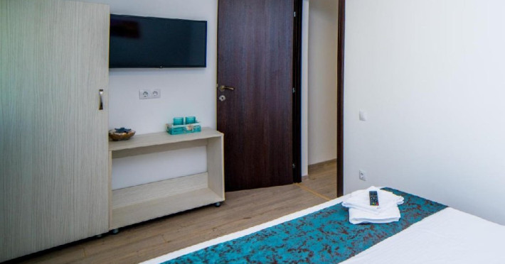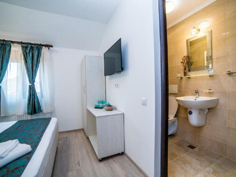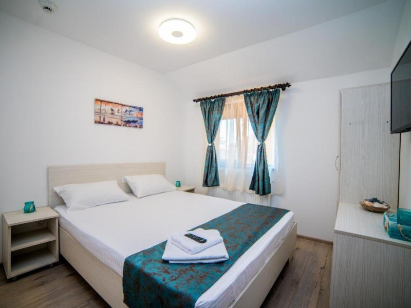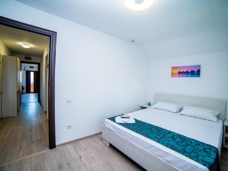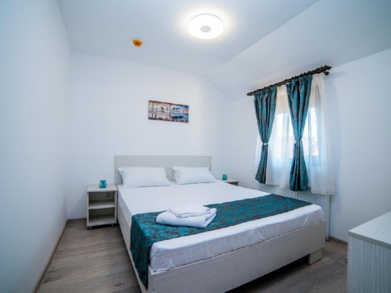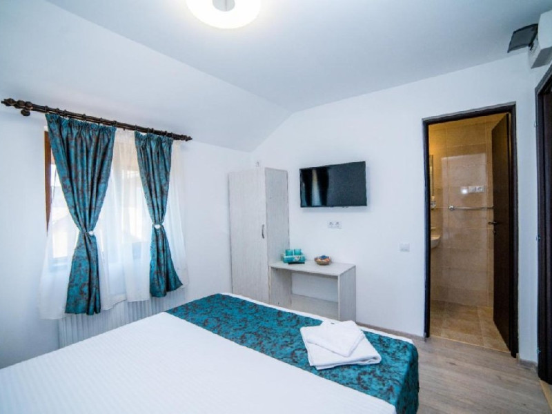 Dotari camere: fiecare camera dispune de pat matrimonial 160/200, aer conditionat, TV LED, baie privata si mobilier modern.