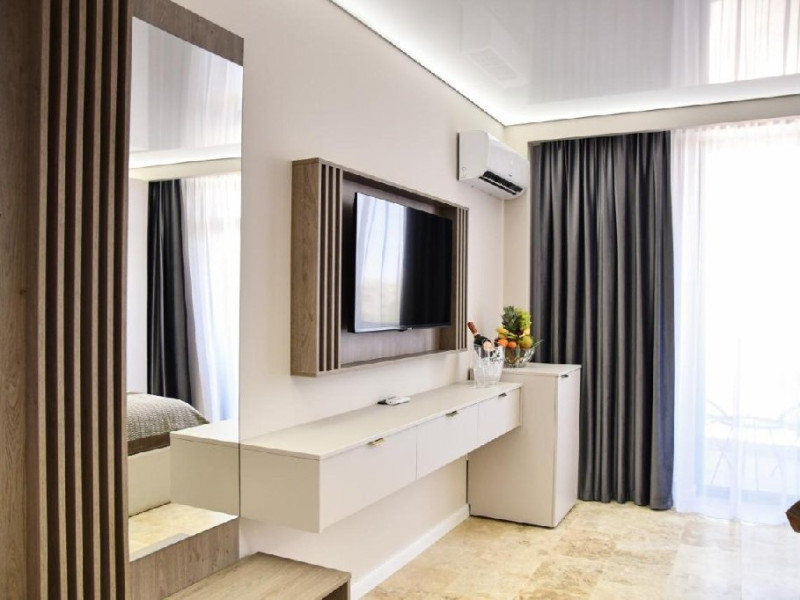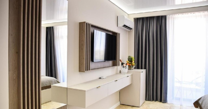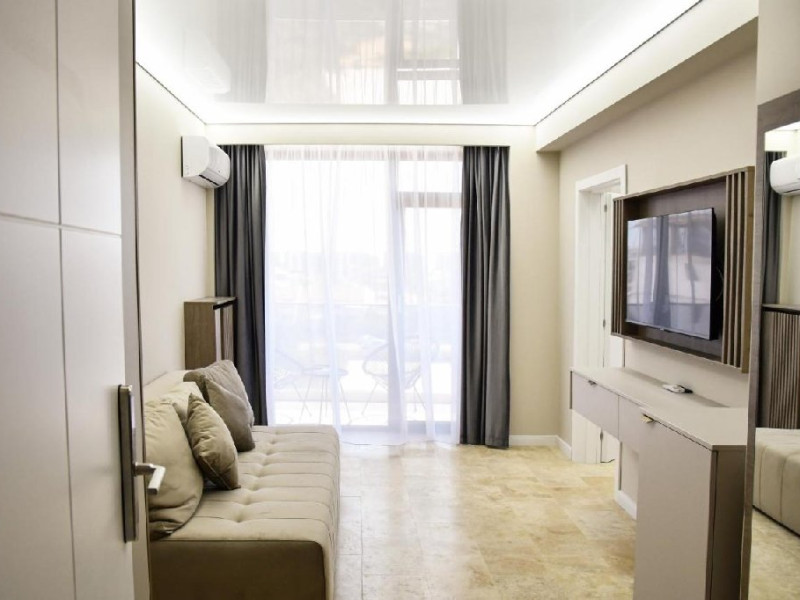 Studio Premium, cu o suprafata de 16 mp, detine un pat matrimonial dublu, baie cu dus, uscator de par, balcon, AC, TV, internet, cana fierbator. Poate acomoda 2 adulti sau 2 adulti + 1 copil de 0 - 4.99 ani.