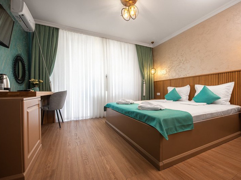Toate camerele sunt dotate cu pat matrimonial, aer contionat, tv, minibar, baie cu dus, uscator de par, fier de calcat.