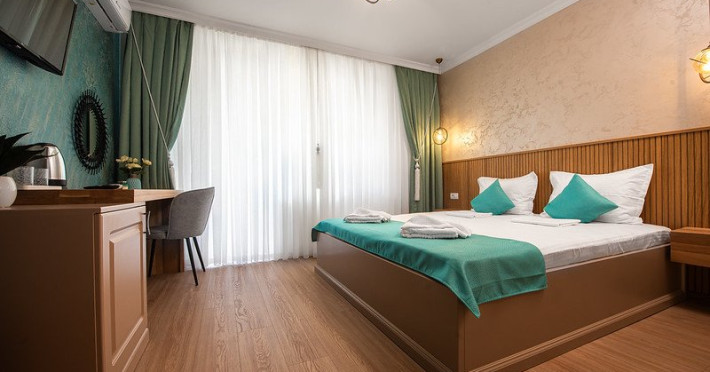 Toate camerele sunt dotate cu pat matrimonial, aer contionat, tv, minibar, baie cu dus, uscator de par, fier de calcat.