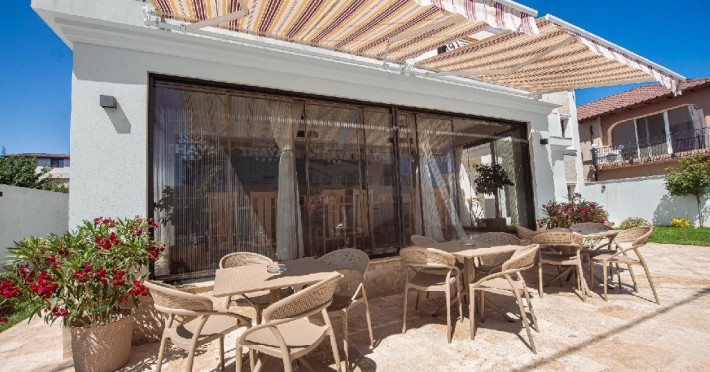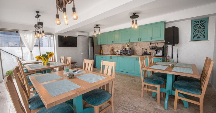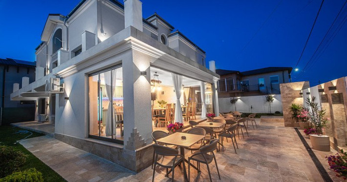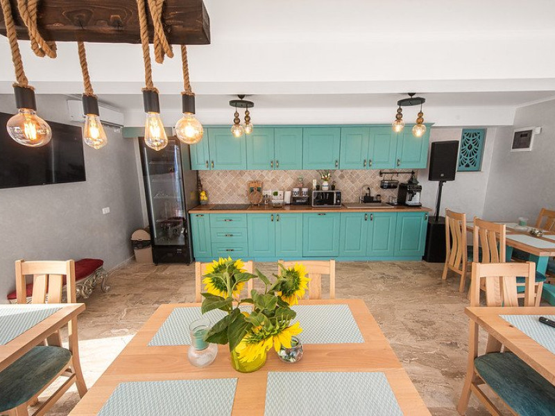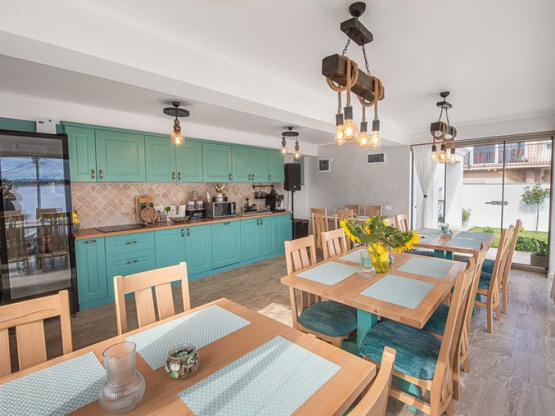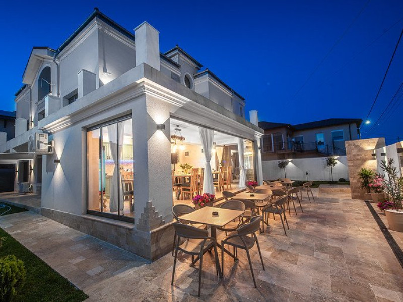 Dotari generale: parcare gratuita in fata, monitorizare video exterior, statie de incarcare pentru masini electrice cu sistem selfpay cu ajutorul unei aplicatii mobile, terasa de 35 mp cu bucatarie complet utilata (terasa este dotata cu un sistem de sticle glisabile, care pot fi deschise total sau inchise la nevoie), salon de mese cu 16 locuri, TV SMART LED, aer conditionat, WI-fi gratuit, zone de relaxare cu verdeata.