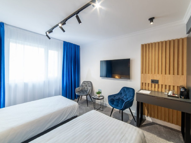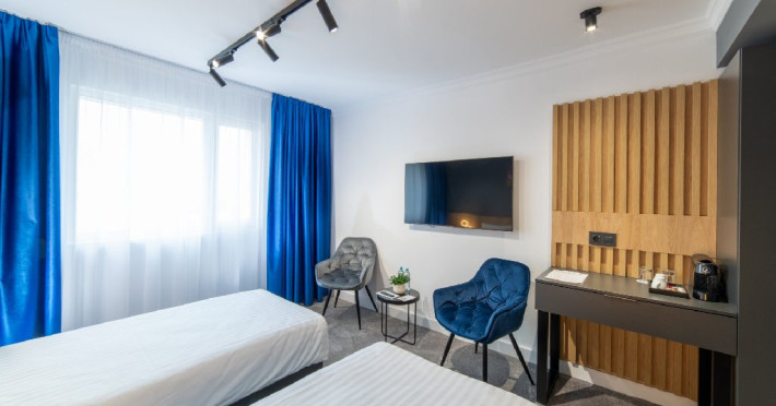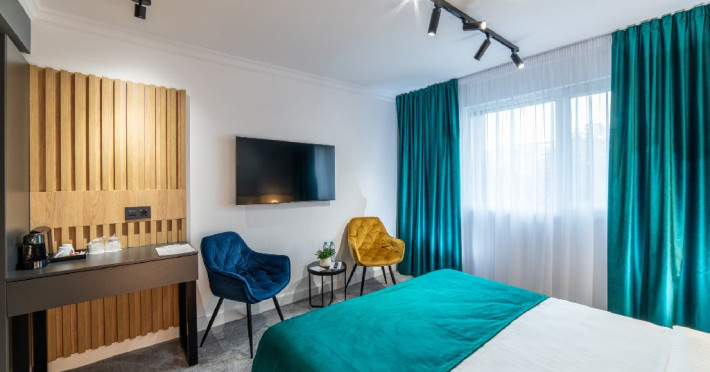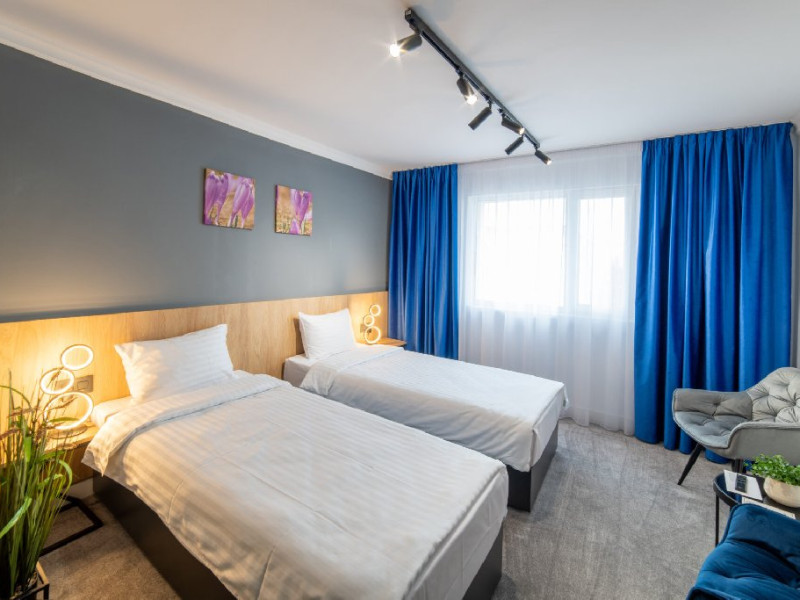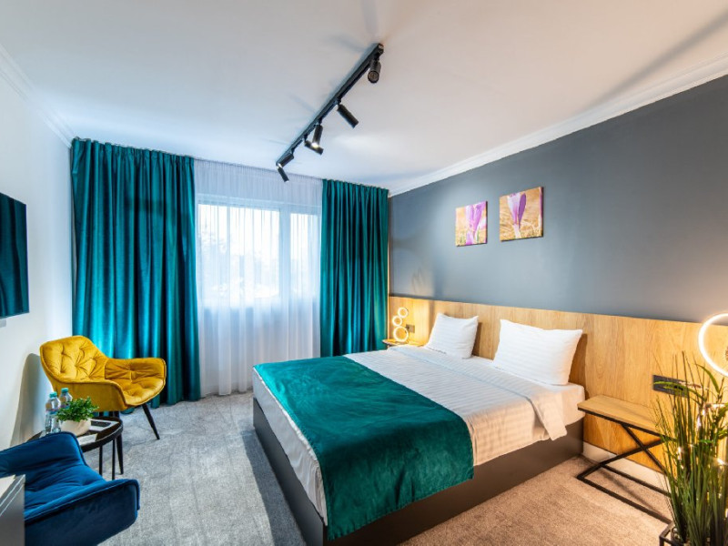 Camerele sunt prevazute cu TV cu ecran plat cu canale prin satelit, dulap, dus si articole de toaleta gratuite. Se asigura lenjerie de pat si prosoape. Accesul in camere se face prin sistem QR-code.