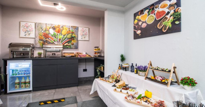 Oaspeții pot savura in fiecare dimineață un mic dejun tip bufet, continental sau englezesc/irlandez complet. Acest hotel are un restaurant care servește mancăruri din bucătăria americană, italiană și mediteraneană. La cerere, sunt disponibile și preparate vegetariene.