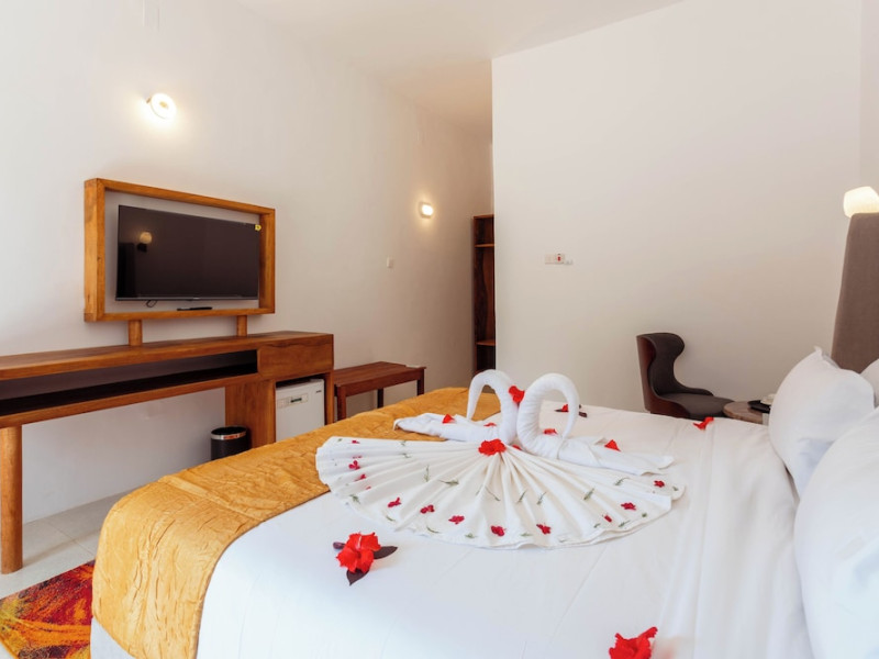 The hotel was modernised in 2024. Guests have a choice of 6 single rooms and 29 double rooms located in a 2-storey main building and several auxiliary buildings. The friendly staff at the reception desk are happy to answer any questions. Services and facilities include a car hire service, room service and a hotel doctor. Amenities include a drinks machine.Datorita dinamicitatii domeniului disponibilitatea ofertelor se modifica de la un moment la altul. De aceea ofertele sunt valabile in limita locurilor disponibile. Agentia nu este responsabila pentru eventualele neconcordante care pot aparea intre informatiile privind tarifele si alte detalii din site si informatiile primite in agentie. In aceste cazuri vor avea prioritate, intotdeauna, informatiile primite in agentie.