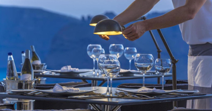 La Canaves Oia Suites oaspeții au la dispoziție un restaurant care servește mâncare à la carte. Preparate din bucătăria grecească așteaptă să fie degustate în fiecare zi. Masa poate fi servită atât în interior, cît si în aer liber, pe terasă, în funcție de vreme. Oaspeţii pot avea diverse băuturi răcoritoare sau alcoolice la bar.