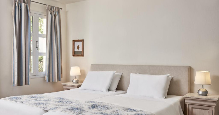 Sunt disponibile 222 camere. Unele camere au balcon cu vedere la mare sau la grădină. Fiecare cameră dispune de mașină pentru preparare cafea sau ceai și fierbător Camerele confortabile de la Candia Park Village au pardoseală de gresie/ marmură, aer condiționat, Tv cu canale prin satelit și seif. În camere există baie cu cadă sau duș ce are în dotare foehn și articole de toaletă gratuite. Oaspeții au acces gratuit la serviciul Wi-fi în camere. Curățenia in cameră se face zilnic. Toate camerele spațioase de la Candia Park Village au zonă de relaxare cu canapea, ceea ce oferă un plus de confort. Fiecare unitate de cazare include o chicinetă utilată cu frigider, plită de gătit și ustensile de bucătărie. Proprietatea oferă camere pentru familie cu o suprafață mai mare și un număr mai mare de paturi față de cele standard.