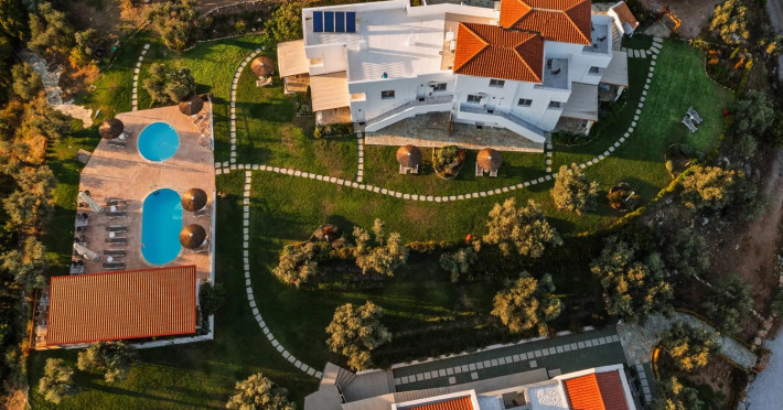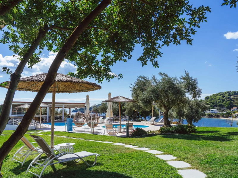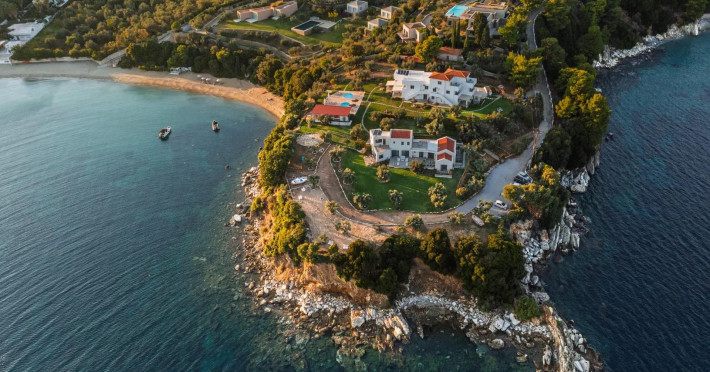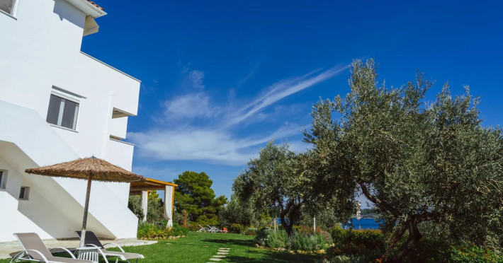 Cape Blue Suites is located on a captivating peninsula in Achladies, on the unique island of Skiathos, surrounded by sea and a breathtaking view, almost of 360 degrees. As if it was born from its own land, in a beautiful olive grove of 8 acres, it has 2 pools, a pool snack bar, a comfortable parking area, unobstructed and safe access to the beach through an internal path of 100 meters and of course internet access, so you may share your unique vacation here with your beloved ones!Cape Blue Suites is located on a captivating peninsula in Achladies, on the unique island of Skiathos, surrounded by sea and a breathtaking view, almost of 360 degrees. As if it was born from its own land, in a beautiful olive grove of 8 acres, it has 2 pools, a pool snack bar, a comfortable parking area, unobstructed and safe access to the beach through an internal path of 100 meters and of course internet access, so you may share your unique vacation here with your beloved ones!