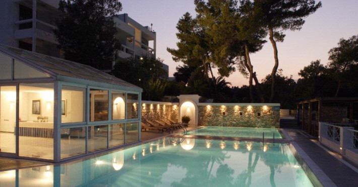 Localizare: Cape Kanapitsa Hotel Suites este un hotel boutique construit pe un promontoriu intre doua golfuri, in cadrul unei proprietati de 8 acri, ocupa una dintre cele mai bune zone din insula, fiind inconjurat de ape de safir, pinii ca de smarald si cerul de topaz.