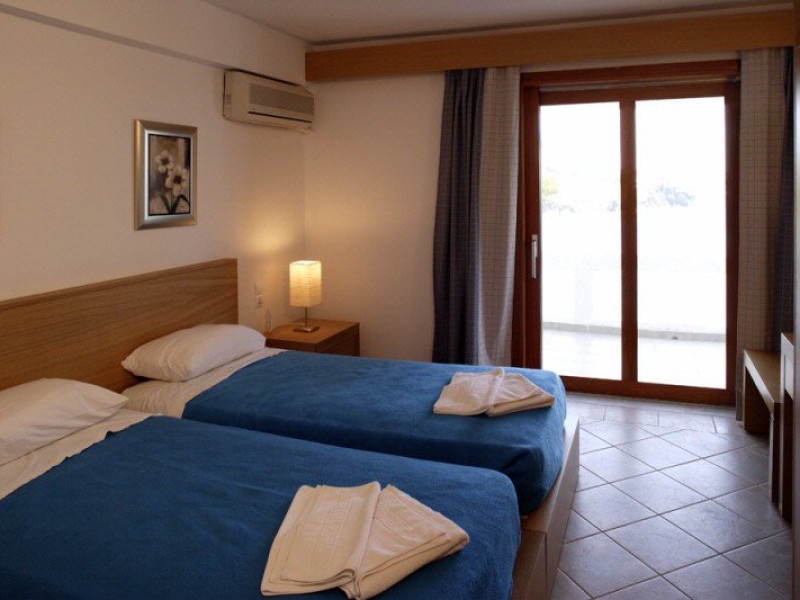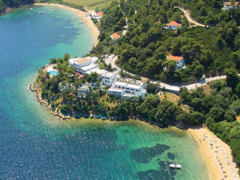 Orasul Skiathos, portul si aeroportul se afla la aproximativ 7 km distanta. Veti avea acces la 2 din cele mai frumoase plaje din Skiathos, dupa o scurta plimbare printre gradini semitropicale si pini.