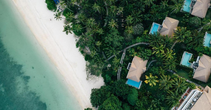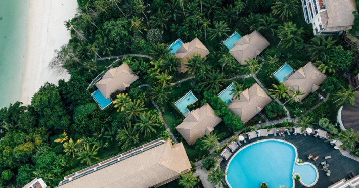 Hotelul Cape Panwa, unde o plajă privată lungă, nisipoasă și umbra din apropiere a plantației de nucă de cocos de pe deal sporește o senzație cu adevărat tropicală.