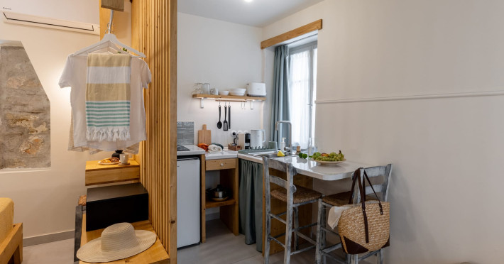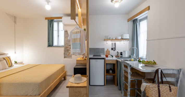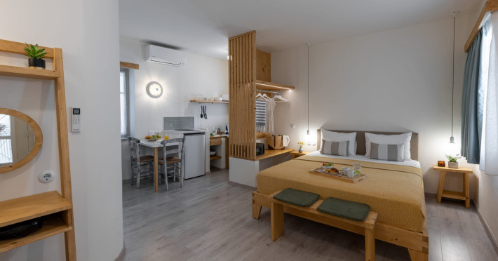 Capella Skiathos Residences is a beautifully restored historical house, once home to Poulia, a local figure with deep ties to the literary world of Alexandros Papadiamantis, Skiathosâ most celebrated author. Located in the vibrant heart of Skiathos town, this charming property blends traditional architecture with modern amenities, offering guests a unique and authentic experience. The accommodation features two beautifully designed studios, ideal for travelers who enjoy being in the center of the action. The house is located in a lively area, surrounded by bustling restaurants, cafés, and local shops, making it perfect for those who love the energy of a vibrant town atmosphere. Due to its central location, guests should expect the sounds of the townâs nightlife, which adds to the lively ambiance of the stay. The location is unbeatable: Just 70 meters from the old port, where you can enjoy waterfront cafés and take in the picturesque views. Only 10 meters from the bustling Papadiamantis Street, a famous pedestrian street lined with shops, restaurants, and bars. A short 100-meter walk to the famous Papadiamantis House, a museum dedicated to the life and works of the legendary author. 150 meters from the main port of Skiathos, offering easy access to ferries, boat tours, and more. 100 meters from Skiathitiko Spiti, another historical landmark where you can explore the islandâs traditions and way of life. While Capella Skiathos Residences offers a cozy and traditional retreat, its lively surroundings make it an excellent choice for guests who want to immerse themselves in the vibrant atmosphere of Skiathos town. Whether youre here to soak in the islands history, explore its lively streets, or enjoy the night scene, this is the perfect spot for an unforgettable stay.Datorita dinamicitatii domeniului disponibilitatea ofertelor se modifica de la un moment la altul. De aceea ofertele sunt valabile in limita locurilor disponibile. Agentia nu este responsabila pentru eventualele neconcordante care pot aparea intre informatiile privind tarifele si alte detalii din site si informatiile primite in agentie. In aceste cazuri vor avea prioritate, intotdeauna, informatiile primite in agentie.