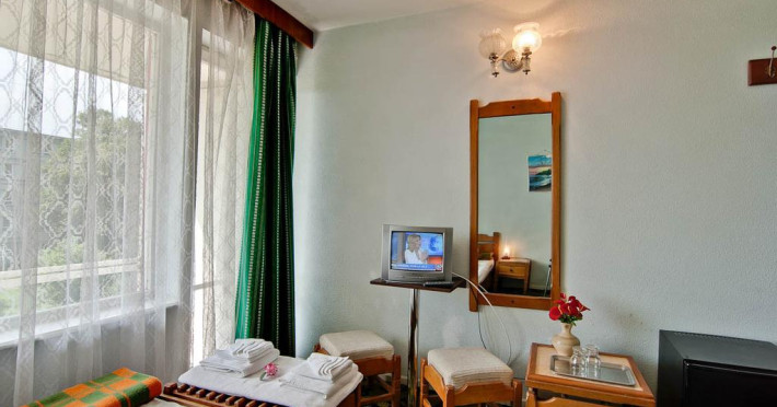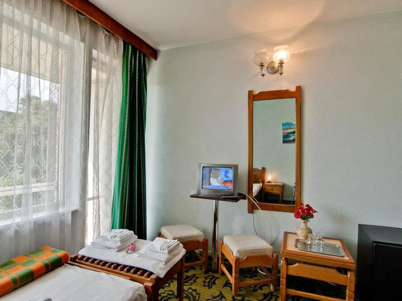 Este situat pe faleza, la 50 m de plaja , 1km de gara si de centrul statiunii. Facilitati hotel: restaurant (capacitate 288 de locuri), receptie 24 de ore, parcare. Hotelul dispune de 112 camere duble (parter+3 etaje). Facilitati camere: paturi twin, baie cu dus, balcon (doar unele camere), TV cablu, frigider (la cerere).Datorita dinamicitatii domeniului disponibilitatea ofertelor se modifica de la un moment la altul. De aceea ofertele sunt valabile in limita locurilor disponibile. Agentia nu este responsabila pentru eventualele neconcordante care pot aparea intre informatiile privind tarifele si alte detalii din site si informatiile primite in agentie. In aceste cazuri vor avea prioritate, intotdeauna, informatiile primite in agentie.