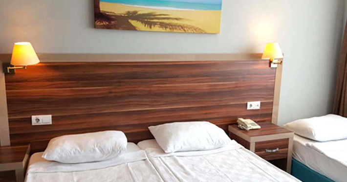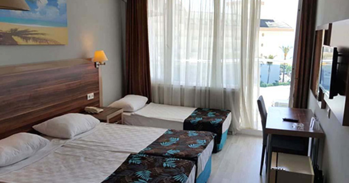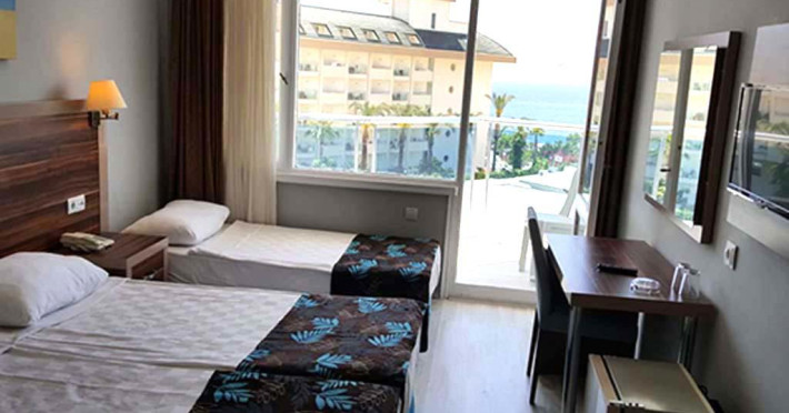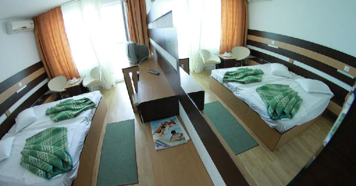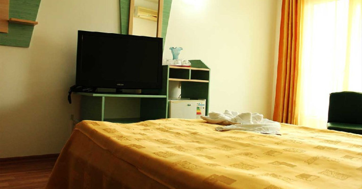 Camerele duble 3* formate din paturi twin, TV, AC, minibar, parchet, covorase, balcon cu scaune de plastic, baie cu dus, plase pentru tantari, telefon. Camerele duble sunt dispuse pe doua laturi, cu vedere frontala catre mare si vedere de ansamblu catre: mare, plaja, golfuri si catre statiune. Se poate acomoda un singur pat suplimentar.