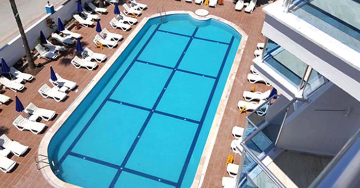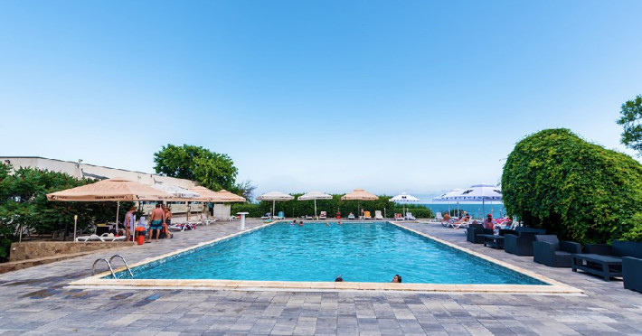 Piscina gratuita in limita disponibilitatii pentru clientii hotelului, amenajata cu sezlonguri si umbrele.