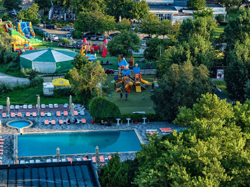Hotelul dispune de piscina, club pentru copii cu loc de joaca in aer liber special amenajat pentru cei mici, X-BOX, internet caffe (in limita disponibilitatii) si gradinita in incinta hotelului, 3 lifturi modernizate recent, sali de conferinta, restaurant, terase, 2 baruri, internet, parcare pazita cu o capacitate de 80 de locuri.
