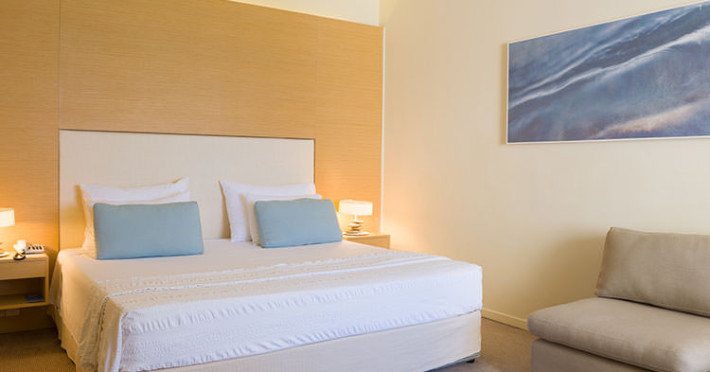 Buffet breakfast is served every morning, and the hotel’s restaurant provides far-reaching sea views. Lunch and dinner are served at the Koi lounge bar, at the a la carte restaurant or the pool bar when the weather is warm.