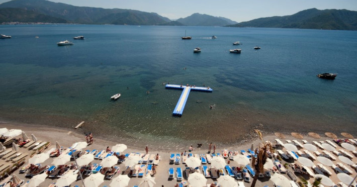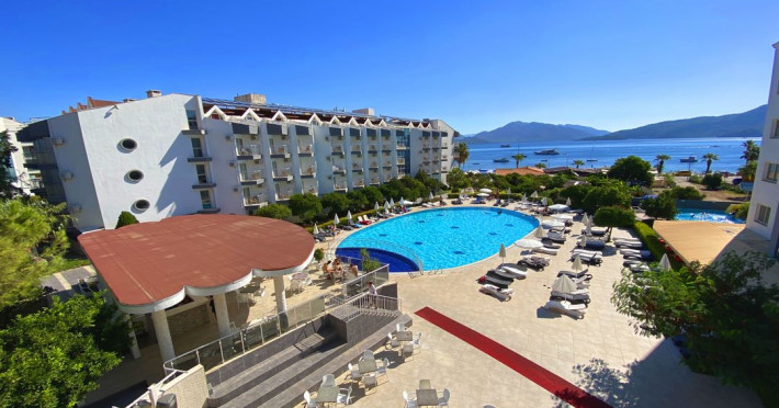 Localizare: Hotelul este la 110 km de Aeroportul Dalaman și la 3 km de Marmaris. Luna Beach Deluxe atrage atenția prin locația sa pe malul mării. Vă puteți bucura de mare pe plaja sa lungă de 25 km. Facilitati hotel: Are baia turcească, saună și facilități de masaj în centrul SPA , centrul de fitness. Puteți înota în piscina exterioară a unității, piscina cu tobogan și piscina pentru copii; Puteți petrece o vacanță distractivă cu animație și oportunități de activități. Dispune de Mini Club si Piscina pentru copii Are restaurant a la carte, restaurant în aer liber și restaurantul interior din unitate. Facilitati gratuite: WI-FI – Centru de Fitness – Animație – Tenis de masă – Sauna – Baie turcească – Sezlonguri – Umbrele – Saltele – Serviciu Recepție – Lobby. Facilitati care se platesc suplimentar: SPA – Doctor – Spălătorie – Masaj – Telefon – Fax – Prosop de plajă (cu depozit) - Restaurant A'la Carte. Facilitati camere: Camerele standard dispun de: Aer condiționat, Balcon, Telefon direct, TV prin satelit, Uscător de păr, Minibar, Seif, baie. Camerele standard au aproximativ 22 de metri pătrați.Localizare