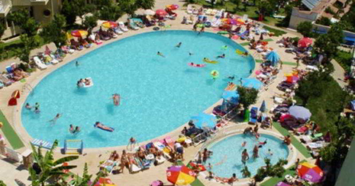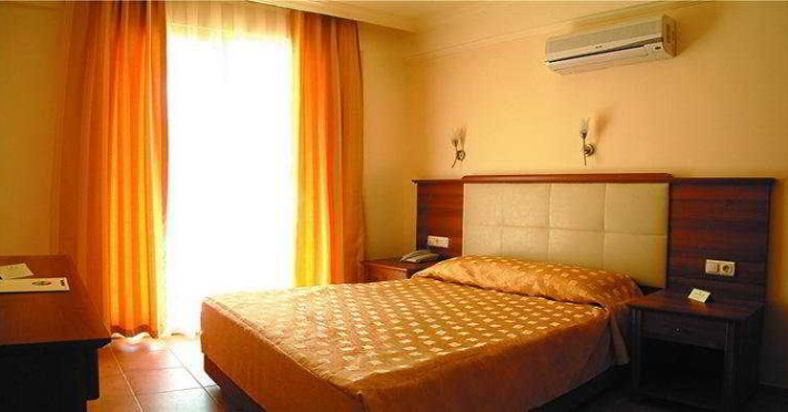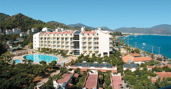 This newly built, air-conditioned beach hotel comprises a total of 203 double rooms. Guests may make use of the foyer with 24-hour reception desk, a currency exchange facility, and 2 lifts, as well as the garden and terrace. In addition, there is a small supermarket, a hairdressers salon, a TV room, a games room, conference facilities, a public Internet terminal, three bars, and two restaurants. Younger guests may let off steam in the kids club or the playground. Room and laundry services, medical assistance, and parking facilities complete the offerings here..This hotel is located on the edge of the beach, only some 3 km from the centre of Marmaris. Shops, restaurants, bars and nightclubs are situated in the surrounding area. It is a few paces to the nearest bus stop, while Dalaman airport lies approximately 90 km from the hotel..The welcoming and comfortable rooms feature a bathroom with hairdryer and shower. Additional fittings include a minibar, satellite TV, a direct dial telephone, a furnished balcony, a hire safe and individually adjustable air conditioning..Guests may select their breakfast, midday and evening meals from varied buffets. It is possible to book an all-inclusive stay..In the outdoor complex there are three swimming pools, a separate childrens paddling area, a poolside snack bar and a sun terrace with loungers and parasols. Guests are additionally offered a sauna, a gym, and a beauty centre with massage offerings available for an additional fee. Billiards may also be played (for an extra charge). A seasonal entertainment programme provides some variety for guests, and in addition, various water sports are on offer at the beach..MasterCard and VISA are accepted as methods of payment.Datorita dinamicitatii domeniului disponibilitatea ofertelor se modifica de la un moment la altul. De aceea ofertele sunt valabile in limita locurilor disponibile. Agentia nu este responsabila pentru eventualele neconcordante care pot aparea intre informatiile privind tarifele si alte detalii din site si informatiile primite in agentie. In aceste cazuri vor avea prioritate, intotdeauna, informatiile primite in agentie.