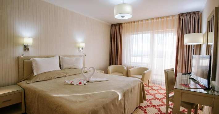 Dotari camere: minibar, telefon, LED TV, conexiune internet, incalzire si aer conditionat, baie cu dus, uscator de par si halat de baie.