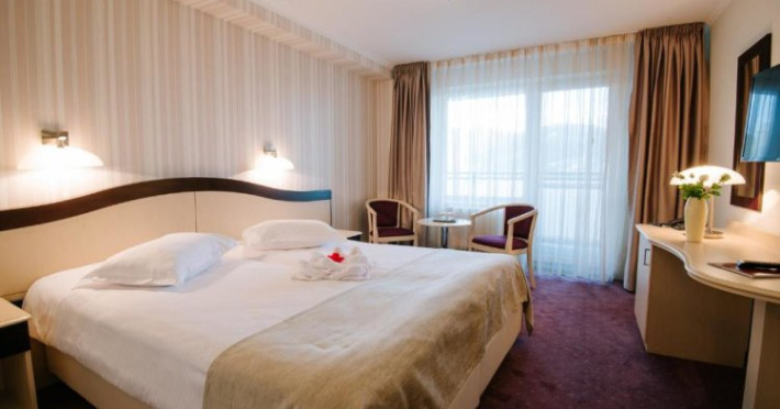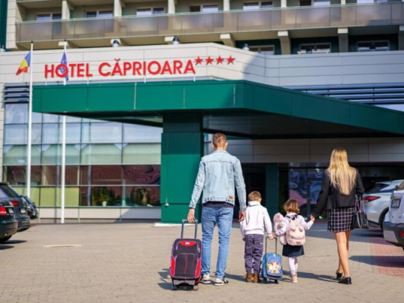 Here, you wont puzzle over the place to go as everything you need is close by. Resort Caprioara Spaamp;Wellness Resort is located in Covasna. This resort is located in the very center of the city. In the morning, have a cup of coffee while looking at the city from the window.Here, you wont puzzle over the place to go as everything you need is close by. Resort Caprioara Spaamp;Wellness Resort is located in Covasna. This resort is located in the very center of the city. In the morning, have a cup of coffee while looking at the city from the window.You can stop by the restaurant. Free Wi-Fi is available on the territory. Ask for more information when checking in. If you travel by car, theres a free parking zone. The beauty and wellness services: a steam bath and a spa center.Sports fans will be able to enjoy a fitness center. You can arrange a business meeting, a board meeting, and even a job interview as there is a conference hall. Accessible for guests with disabilities: the elevator helps them to go to the highest floors. Additional services that the resort offers to its guests: a laundry, dry cleaning, a safe-deposit box and a concierge.You can stop by the restaurant. Free Wi-Fi is available on the territory. Ask for more information when checking in. If you travel by car, theres a free parking zone. The beauty and wellness services: a steam bath and a spa center.Sports fans will be able to enjoy a fitness center. You can arrange a business meeting, a board meeting, and even a job interview as there is a conference hall. Accessible for guests with disabilities: the elevator helps them to go to the highest floors. Additional services that the resort offers to its guests: a laundry, dry cleaning, a safe-deposit box and a concierge..1 RON not included 40 per guest per nightDatorita dinamicitatii domeniului disponibilitatea ofertelor se modifica de la un moment la altul. De aceea ofertele sunt valabile in limita locurilor disponibile. Agentia nu este responsabila pentru eventualele neconcordante care pot aparea intre informatiile privind tarifele si alte detalii din site si informatiile primite in agentie. In aceste cazuri vor avea prioritate, intotdeauna, informatiile primite in agentie.