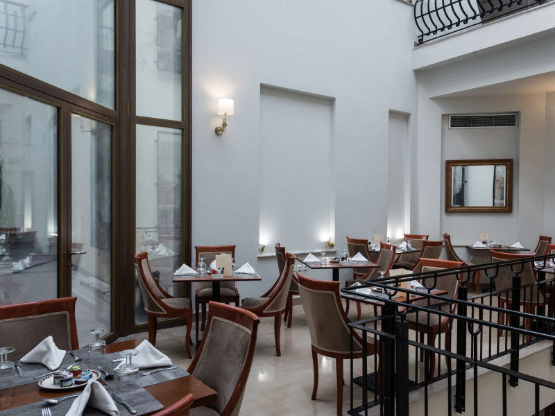 Nestled in the old town it sits just metres away from the beautiful promenade and its popular open-air cafes. It is also within walking distance from the train and bus stations and the busiest streets and areas. Petite, elegant, warm and hospitable, the hotel is housed in the historical building of the old Ottoman post office, which has been carefully renovated and redesigned to enable maximum comfort for its guests. The décor of the venue will immediately astonish it visitors with the charismatic shades of red, green and blue. The double soundproof windows ensure a peaceful and delicate ambience, while the fine handmade carpets dominate the massive wooden floors that are illuminated by unique ceiling lamps. Each accommodation unit features delicate works of art and decorative antiques which only add to the entire atmosphere of elegance and sophistication.Datorita dinamicitatii domeniului disponibilitatea ofertelor se modifica de la un moment la altul. De aceea ofertele sunt valabile in limita locurilor disponibile. Agentia nu este responsabila pentru eventualele neconcordante care pot aparea intre informatiile privind tarifele si alte detalii din site si informatiile primite in agentie. In aceste cazuri vor avea prioritate, intotdeauna, informatiile primite in agentie.