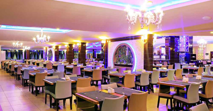 Hotelul dispune de Receptie deschisa 24 h, Lobby, 3 lifturi, tv corner,, 1 restaurant principal interior (550 pax) si restaurant in aer liber (120 pax), 1 piscina exterioara ( 570 m2 ) / 1 piscina exterioara pentru copii ( 100 m2 ), 4 tobogane cu apa (anumite ore) / 1 tobogan cu apa pentru copii, Bar la piscina, Snack-/Bar pe plaja/ Discoteca in aer liber, Amfiteatru - Scena de spectacol, Mini club, loc de joaca pentru copii, Centru de fitness / Baie turceasca ( anumite ore ) / Sauna-masaj-peeling (cu taxa)