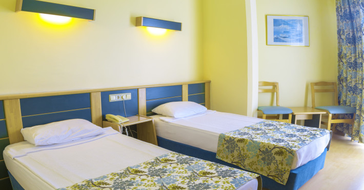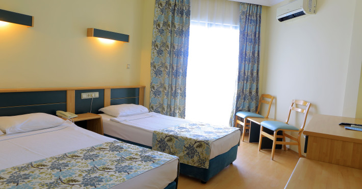 Sunt disponibile 299 camere. Unele camere au balcon, cu vedere la piscină, unde oaspeții se pot relaxa în voie. În camere există baie cu cadă sau duș prevăzută cu foehn. Camerele luminoase de la Caretta Relax Hotel sunt dotate cu parchet, aer condiționat și Tv. Oaspeții au la dispoziție serviciul de room service pentru a servi masa sau diverse băuturi. Oaspeții au acces gratuit la serviciul Wi-fi în camere. Curățenia in cameră se face zilnic. Proprietatea oferă camere pentru familie cu o suprafață mai mare și un număr mai mare de paturi față de cele standard.