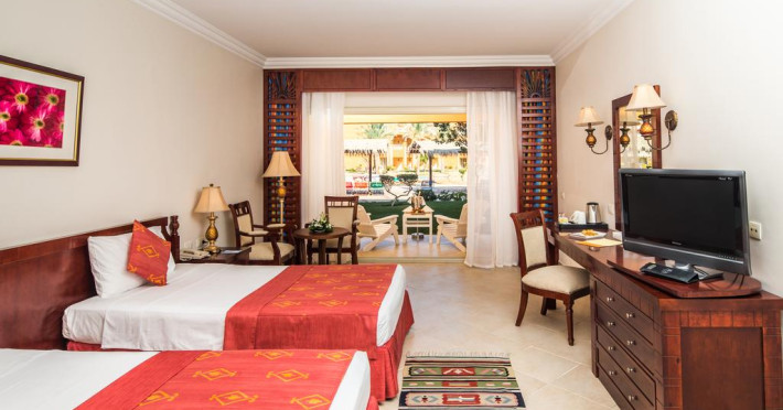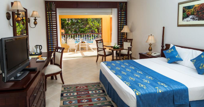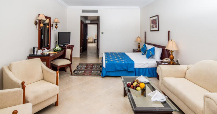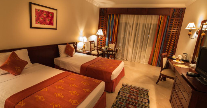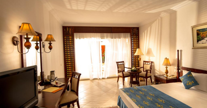 Sunt disponibile 529 camere. Fiecare cameră dispune de minibar și cană pentru preparare apă caldă. În camere există baie cu cadă sau duș ce are în dotare foehn și articole de toaletă gratuite. Unele camere au balcon cu vedere la mare sau la piscină. Camerele confortabile de la Caribbean World Resort Soma Bay au pardoseală de gresie/ marmură, aer condiționat, Tv cu canale prin satelit și seif. Curățenia in cameră se face zilnic. Anumite camere au zonă de relaxare și cadă cu hidromasaj care asigură un plus de confort și răsfăț.