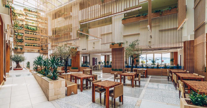 Facilitati hotel: receptie 24h, lobby, bar, lift, aer conditionat, 2 restaurante, Wi-Fi, piscina exterioara cu sectiune pentru copii, sala de fitness, centru Spa, loc ed joaca pentru copii.