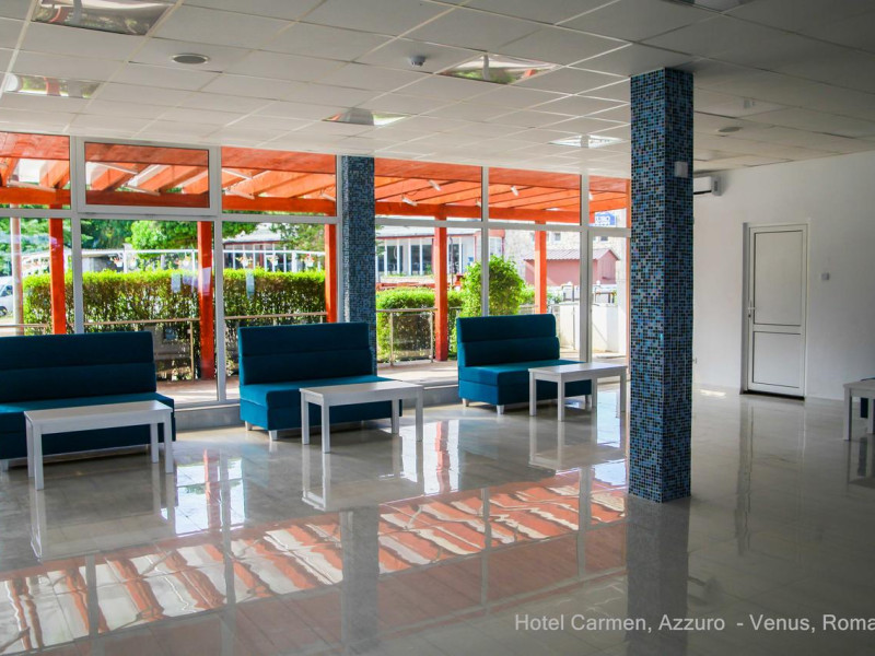 Hotelul Carmen Azzuro se afla in zona centrala a statiunii Venus, pe strada principala, cu acces la plaja si dig. Facilitati hotel: receptie non-stop, sala de conferinte, lift, restaurant, terasa, gradina, loc de joaca pentru copii, jocuri si puzzle-uri, divertisment (muzica live, programe cu animatori pentru copii), piscina, bar, WI-FI gratuit, parcare gratuita, parcare pentru persoanele cu dizabilitati, camera de bagaje, reducere acordata la achizitia sezlongurilor pe plaja Bali, situata la 100 metri de hotel pe plaja mare a statiunii. Facilitati camere: aer conditionat, baie proprie cu dus, uscator de par, TV LCD, frigider, telefon, balcon, plasa de tantari, WI-FI gratuit. Mic dejun= in regim bufet suedez- varietate bogata de preparate calde si reci- apa, bauturi racotitoare, ceai, cafea incluse . Demipensiune = mic dejun+pranz/cina in regim bufet suedez -feluri diversificate din bucataria romaneasca si internationala cu bufet de salate, fructe si deserturi- apa, bauturi racoritoare, vinul casei, bauturi alcoolice(whisky,vodca si gin) si bere la draft oferite doar in timpul orelor de masa in cadrul restaurantului si la barul piscinei. All inclusive light = mic dejun+pranz+cina in regim bufet suedez-feluri diversificate din bucataria romaneasca si internationala cu bufet de salate, fructe si deserturi-apa si bauturi racoritoare pe tot parcursul zilei (7:30-22:00), vinul casei, bauturi alcoolice(whisky,vodca si gin) si bere draft in intervalul 11:00-22:00 in cadrul restaurantului si la barul piscinei.Datorita dinamicitatii domeniului disponibilitatea ofertelor se modifica de la un moment la altul. De aceea ofertele sunt valabile in limita locurilor disponibile. Agentia nu este responsabila pentru eventualele neconcordante care pot aparea intre informatiile privind tarifele si alte detalii din site si informatiile primite in agentie. In aceste cazuri vor avea prioritate, intotdeauna, informatiile primite in agentie.