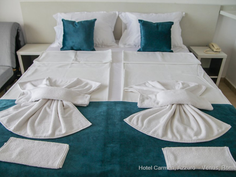 (fost Hotel Lidia) este un hotel scaldat de lumina soarelui si briza marii in fiecare dimineata, beneficiind de o pozitie deosebita pe malul marii. Hotel Carmen Azzuro imbina utilul cu placutul, fiind situat chiar in centrul statiunii, pe strada principala, dar cu acces la plaja si dig. De la oricare dintre cele cinci nivele complet renovate in 2019, aveti senzatia ca plutiti deasupra valurilor. Aveti la dispozitie 128 de camere duble elegante si confortabile, dotate cu baie proprie cu dus, aer conditionat, televizor smart, frigider, telefon, balcon si conexiune de internet Wi-Fi. De asemenea hotelul este dotat cu lift, loc de depozitare bagaje si loc de parcare. Hotelul Carmen Azzuro este ideal pentru turistii care doresc cazare pe malul marii si apreciaza linistea statiunii Venus