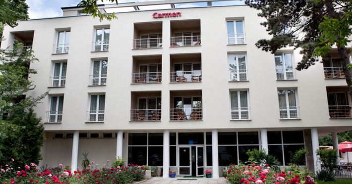 Hotelul Carmen este situat in statiunea Eforie Nord pe faleza la 30 m de plaja, in rondul Bellona. Facilitati hotel: 24 apartamente (dormitor cu pat dublu si living cu canapea extensibila), restaurant (150 locuri), terasa, bar. Facilitati camere: balcon, baie cu cada, TV, Wi-Fi, aer conditionat.Datorita dinamicitatii domeniului disponibilitatea ofertelor se modifica de la un moment la altul. De aceea ofertele sunt valabile in limita locurilor disponibile. Agentia nu este responsabila pentru eventualele neconcordante care pot aparea intre informatiile privind tarifele si alte detalii din site si informatiile primite in agentie. In aceste cazuri vor avea prioritate, intotdeauna, informatiile primite in agentie.