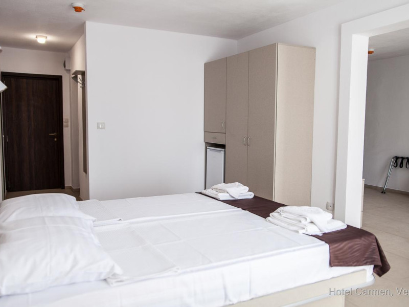 Hotelul Carmen se afla in zona centrala a statiunii, pe promenada cu magazine, la 50 de metri de plaja. Facilitati hotel: receptie non-stop, lift, restaurant, terasa, gradina, loc de joaca pentru copii, divertisment (muzica live), WI-FI gratuit, parcare gratuita, parcare pentru persoanele cu dizabilitati, camera de bagaje, reducere acordata la achizitia sezlongurilor pe plaja Bali, situata la 50 de metri de hotel. Facilitati camere: frigider, TV, telefon, aer conditionat, baie proprie cu dus, balcon. Mic dejun= in regim bufet suedez/varietate bogata de preparate calde si reci- apa, bauturi racotitoare, ceai, cafea incluse 7:30-10:30. Demipensiune/cina = mic dejun+cina fisa cont 50 lei/pers/zi -feluri diversificate din bucataria romaneasca si internationala 18:00-22:00.Datorita dinamicitatii domeniului disponibilitatea ofertelor se modifica de la un moment la altul. De aceea ofertele sunt valabile in limita locurilor disponibile. Agentia nu este responsabila pentru eventualele neconcordante care pot aparea intre informatiile privind tarifele si alte detalii din site si informatiile primite in agentie. In aceste cazuri vor avea prioritate, intotdeauna, informatiile primite in agentie.