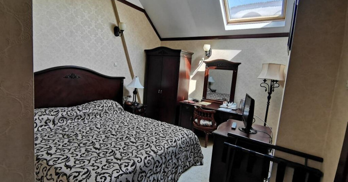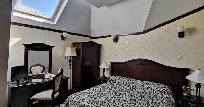 Camera single: este o camera cu pat matrimonial, decorata in acelasi stil Victorian, foarte intim ce face ca sederea dumneavoastra sa fie comfortabila si eleganta in acelasi timp. Aceasta camera are o suprafata de aproximativ 15 mp si este destinata cazarii unei singure persoane.