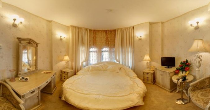 Camera dubla extralarge: aceasta camera este alegerea ideala pentru o pauza romantica, ocazie speciala, noaptea nuntii sau o luna de miere. Dispune de un king size bed cu forma rotunda, iar mobila este de culoare crem.