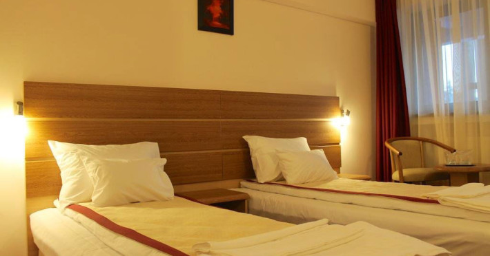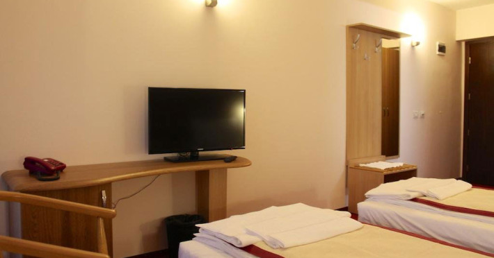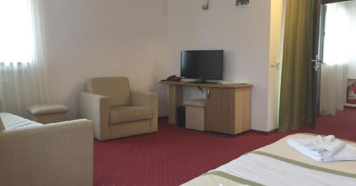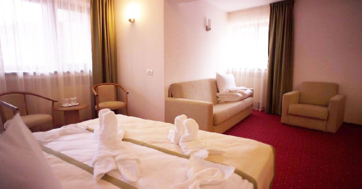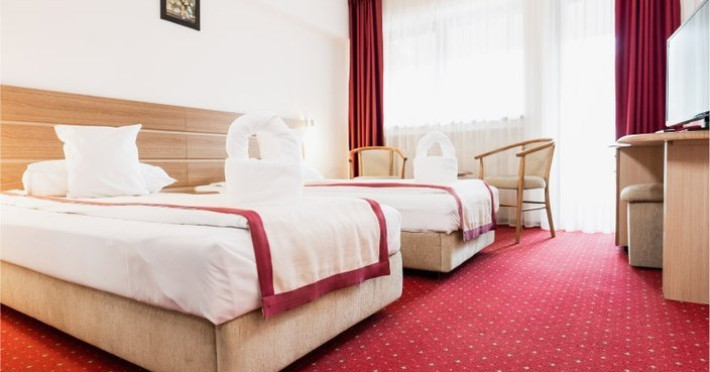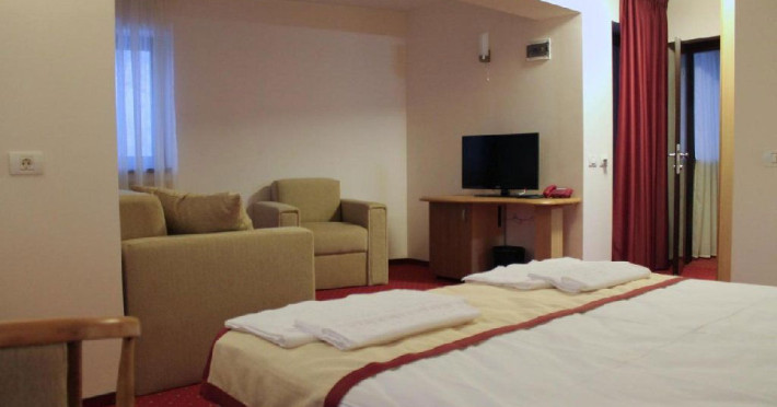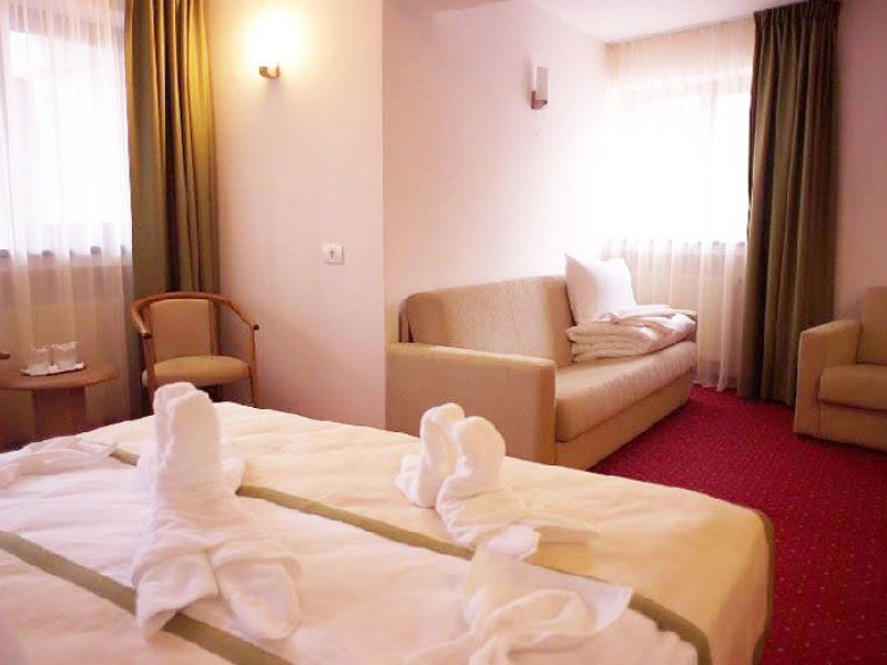 Hotelul CarpaÈi este situat în staÈiunea Predeal, la 4 minute cu maÈina de pârtiile de schi. Hotelul are de un numar de 93 spaÈii de cazare structurate astfel: - 85 camere duble clasificate 3* - 3 camere suite clasificate 4* - 5 garsoniere clasificate 4* Fiecare camerÄ este dotatÄ cu minibar, LED TV Èi televiziune prin cablu, telefon fix Èi o baie care include cabinÄ de dus, uscÄtor de par. Hotelul CarpaÈi oferÄ un serviciu de recepÈie de 24 de ore pe zi Èi douÄ sÄli pentru organizarea de conferinÈe Èi evenimente. Hotelul deÈine restaurant propriu cu o capacitate de 200 locuri, bar recepÈie, lobby bar, wellness bar, cramÄ. Tarifele includ TVA. Taxele locale se adaugÄ Èi se plÄtesc la recepÈie. Ziua de cazare incepe la ora 16:00 si se termina la ora 12:00Datorita dinamicitatii domeniului disponibilitatea ofertelor se modifica de la un moment la altul. De aceea ofertele sunt valabile in limita locurilor disponibile. Agentia nu este responsabila pentru eventualele neconcordante care pot aparea intre informatiile privind tarifele si alte detalii din site si informatiile primite in agentie. In aceste cazuri vor avea prioritate, intotdeauna, informatiile primite in agentie.
